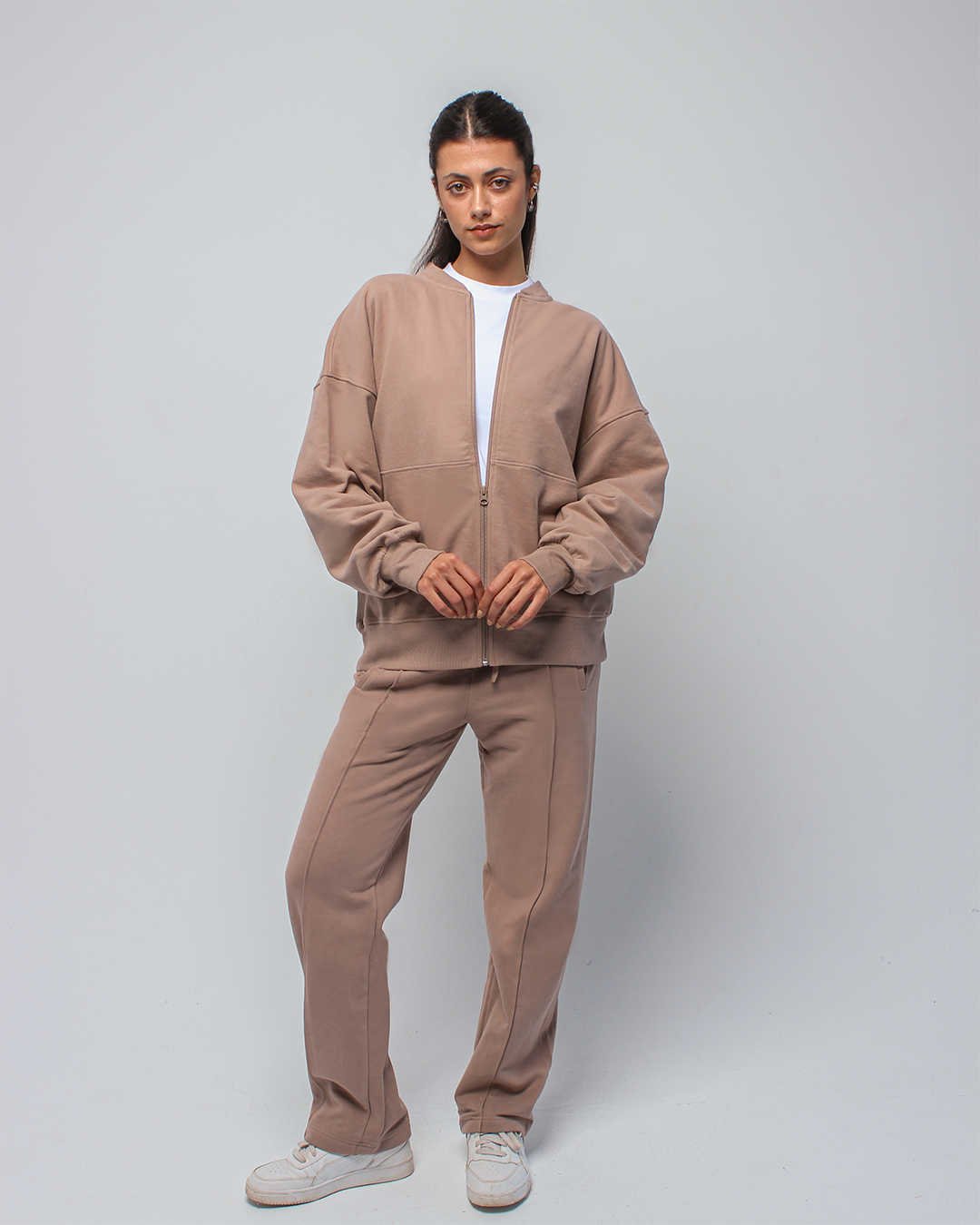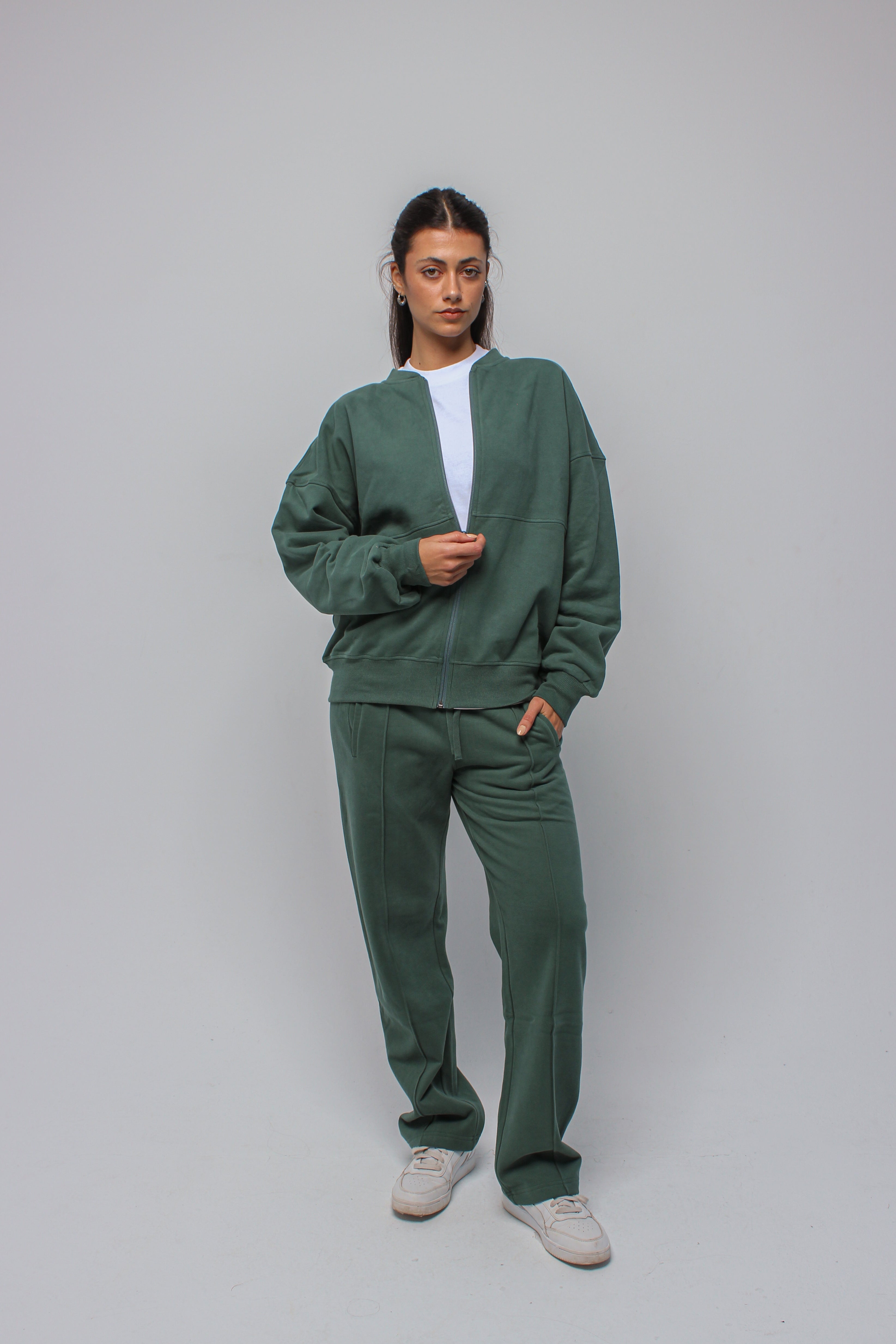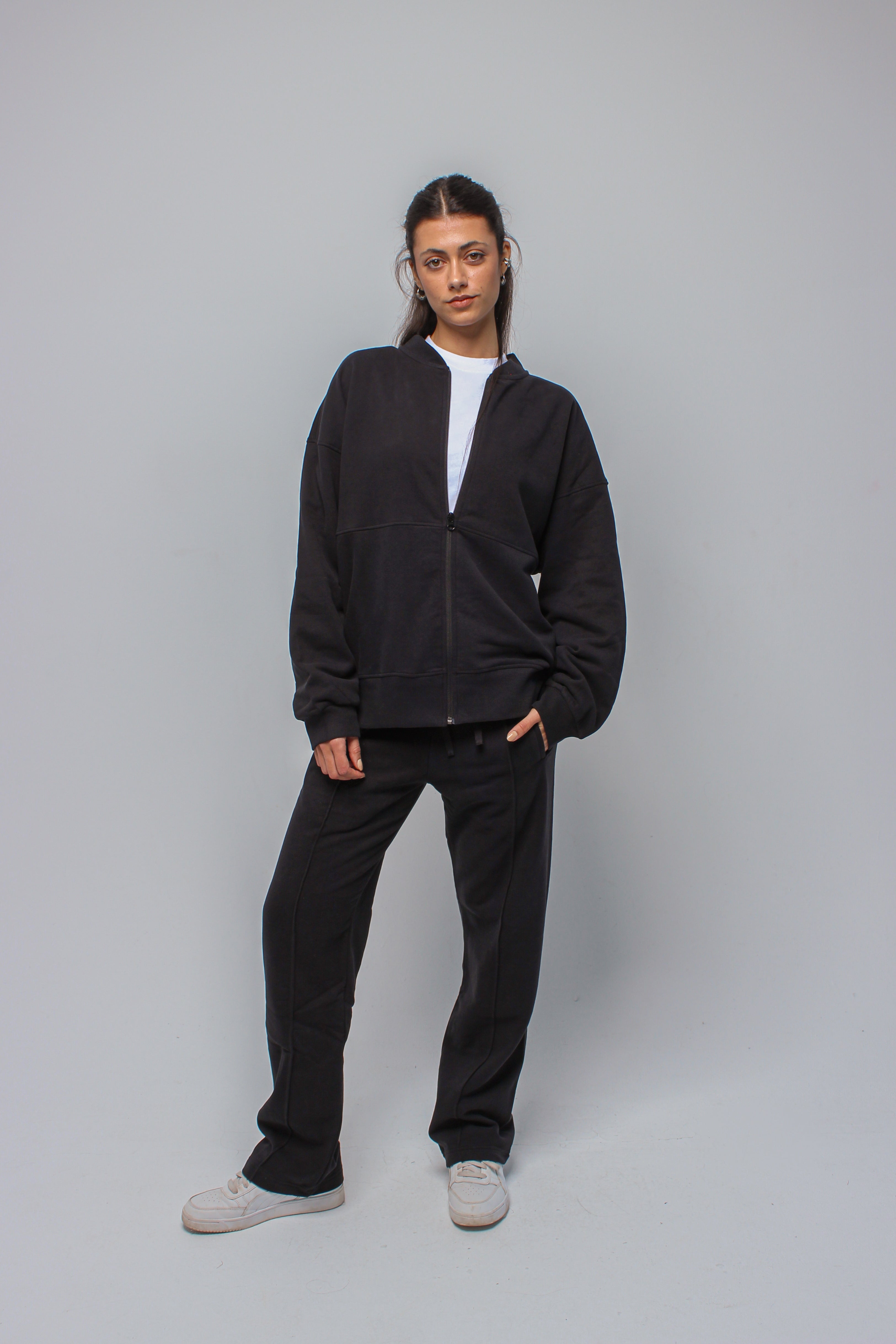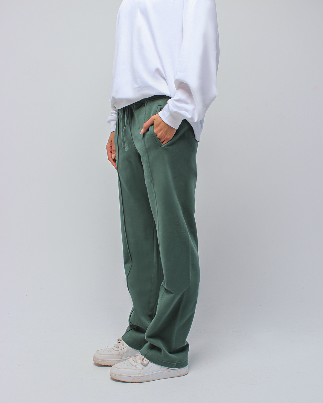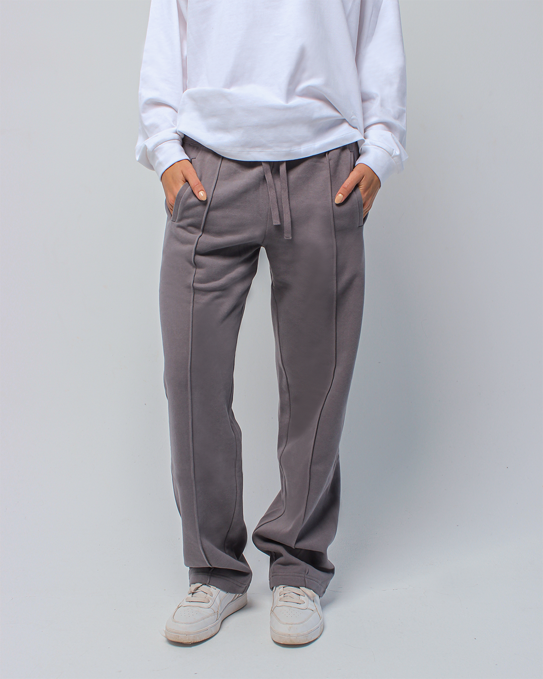 Relaxed straight-leg pants designed with a soft, structured feel. A clean front seam runs down the center for a lengthened, refined look, while the comfortable waistband makes them ideal for everyday wear.