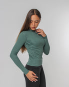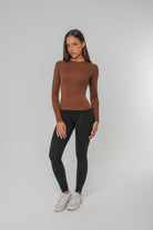 A snug neckline that not only provides a sleek look but also lifts the chest area, offering a flattering and balanced silhouette.