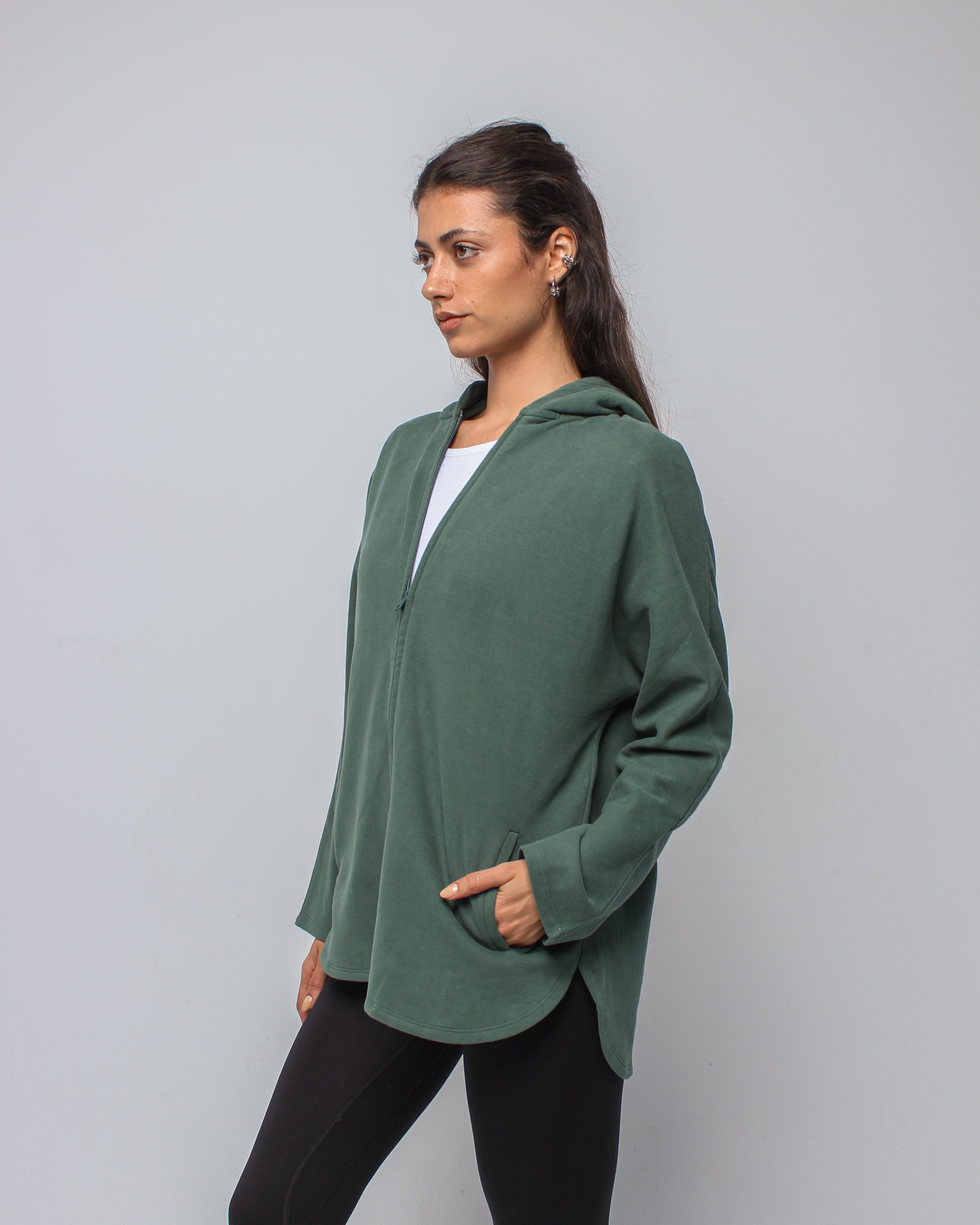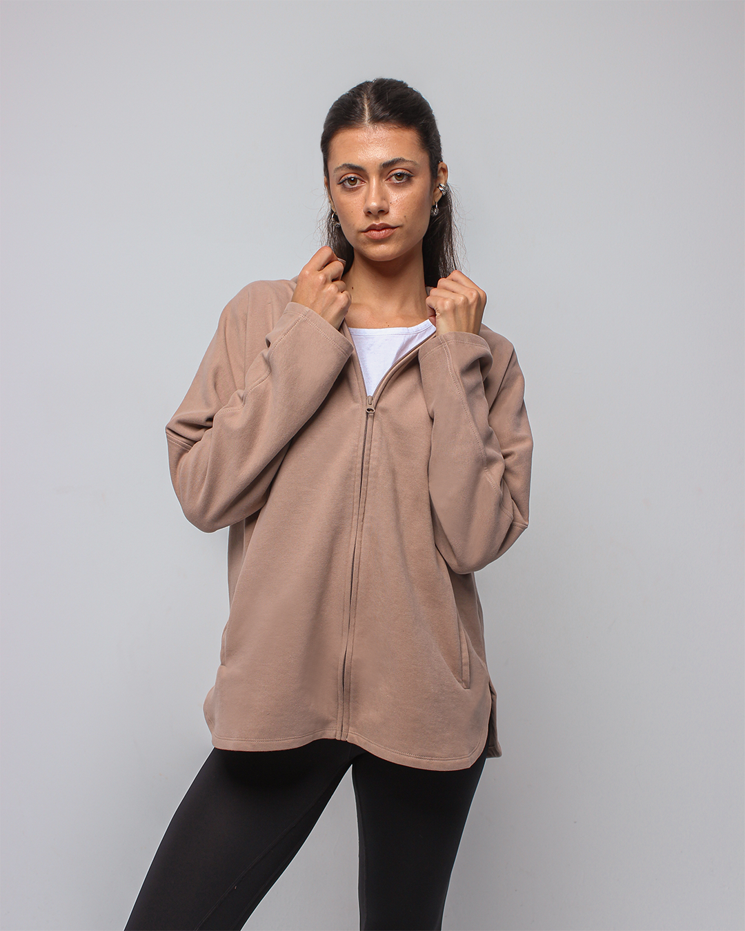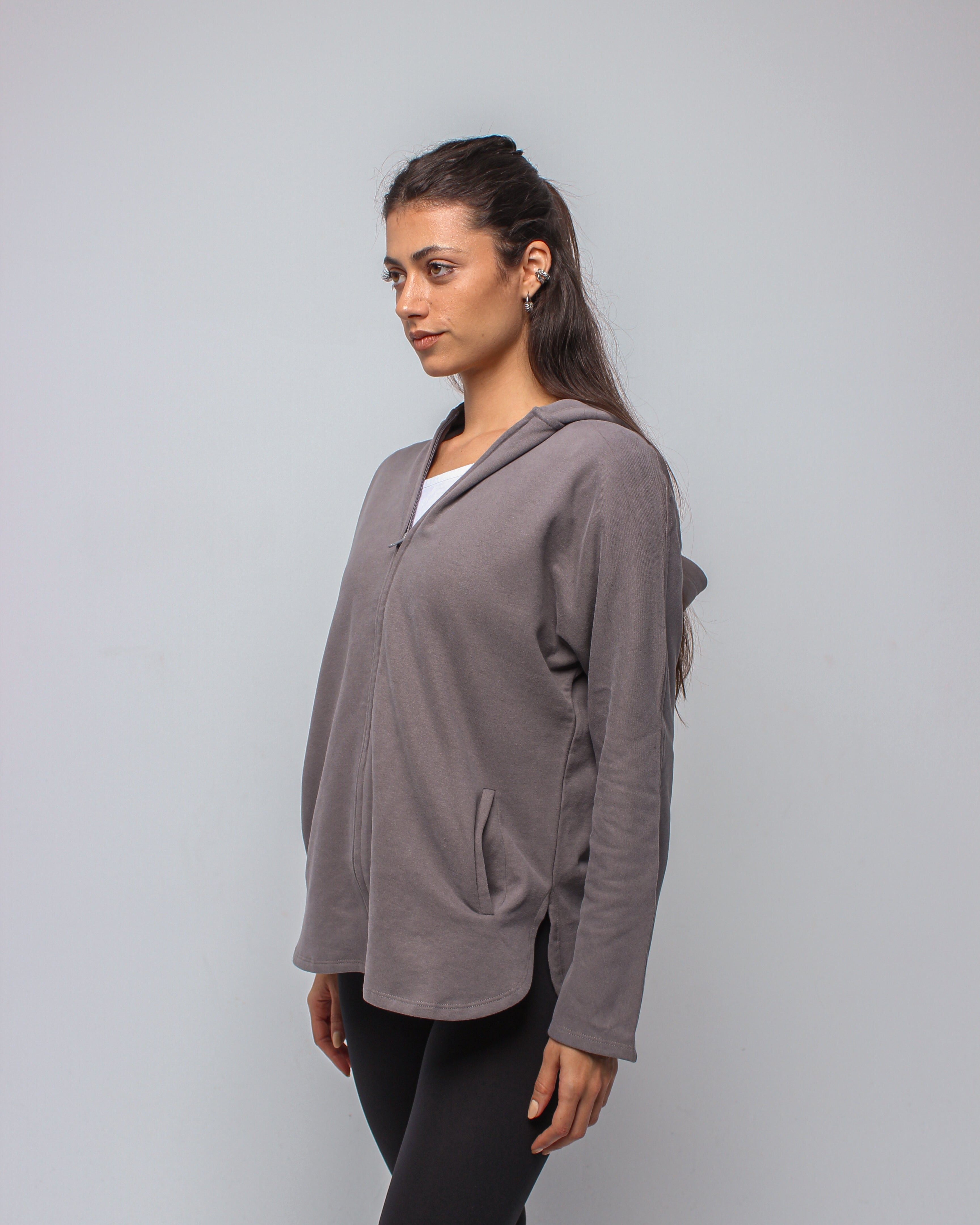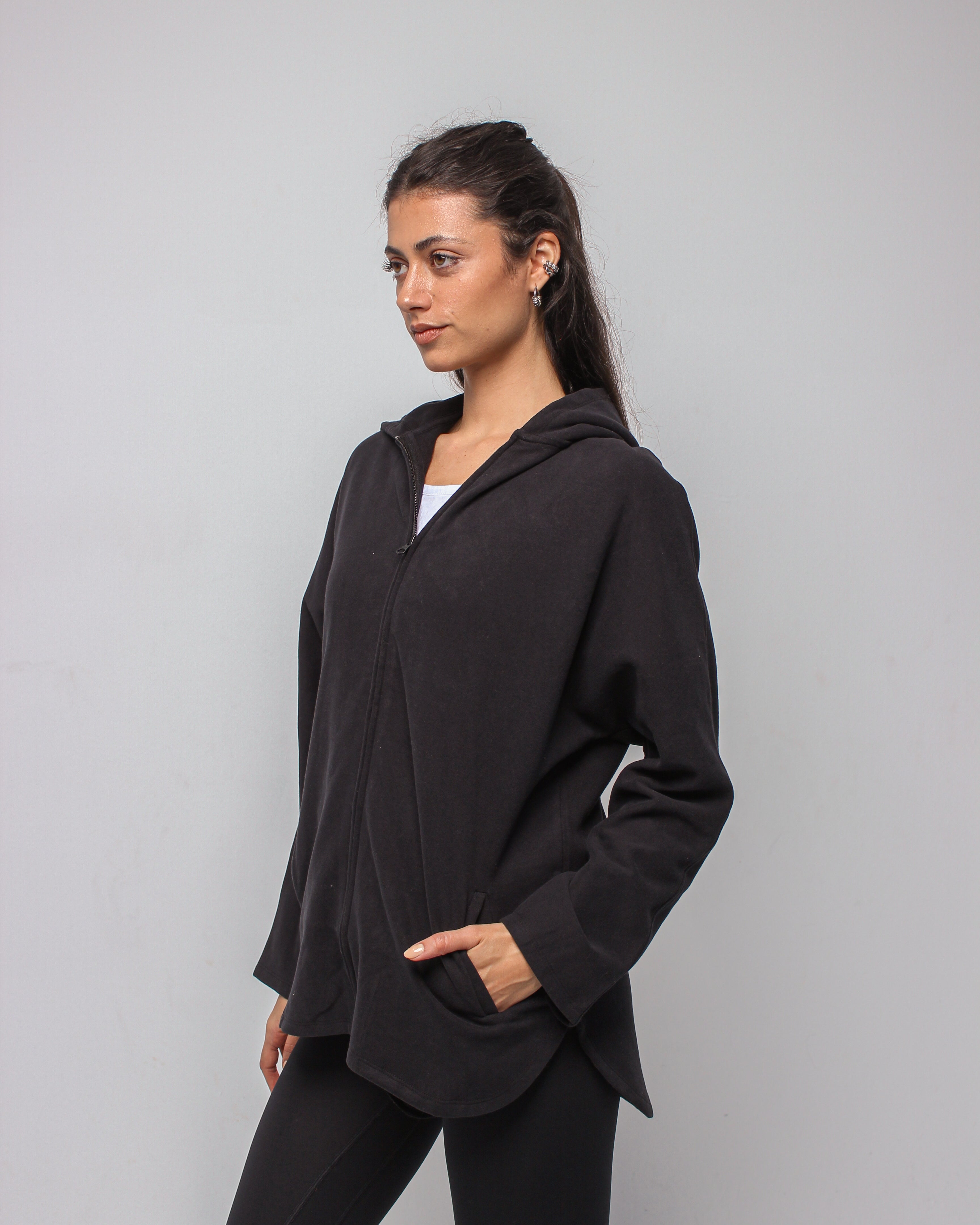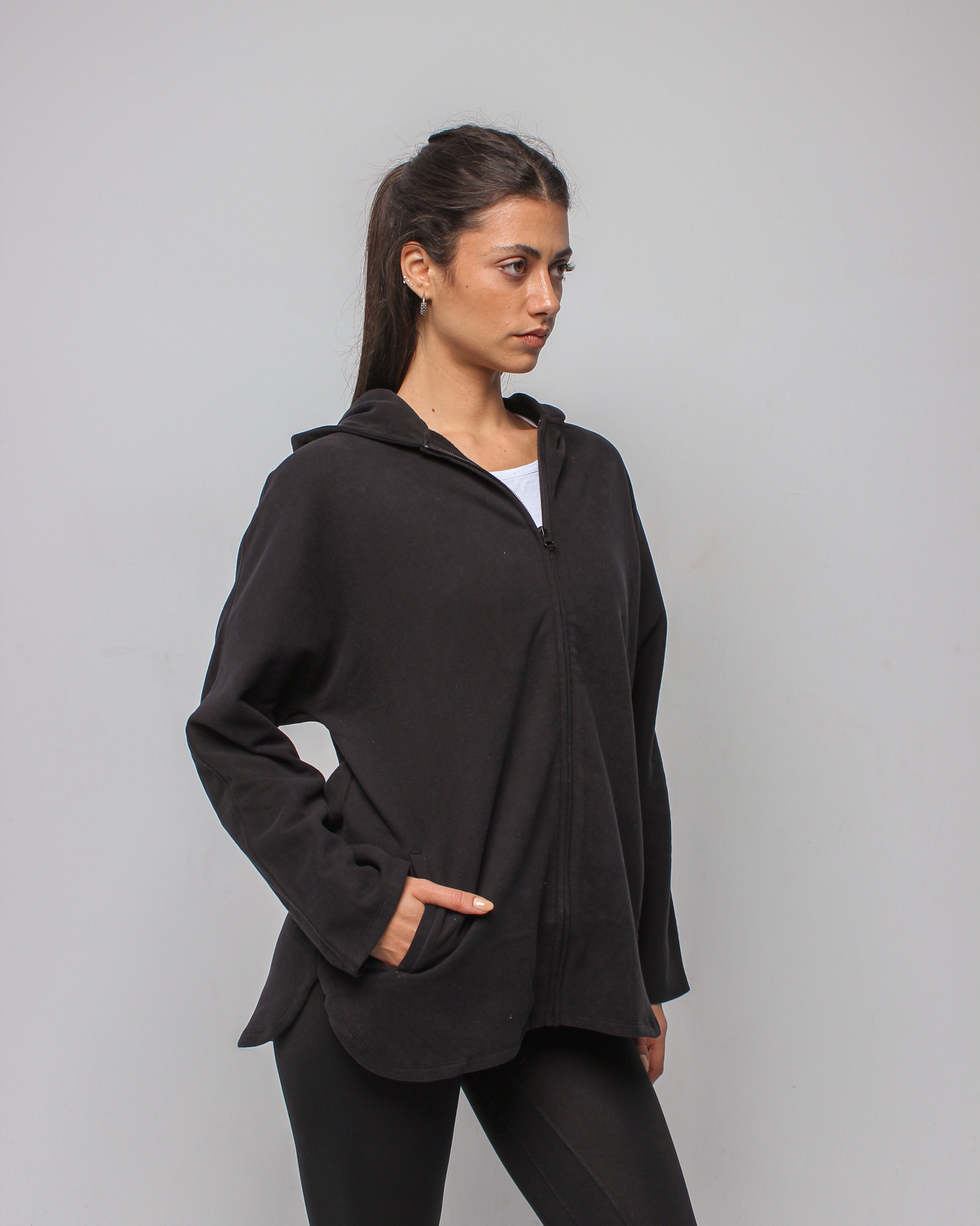 An effortlessly relaxed full-zip jacket designed with an oversized silhouette for maximum comfort. Featuring a spacious hood and soft, breathable fabric, it delivers a cozy, laid-back fit perfect for layering before and after movement.