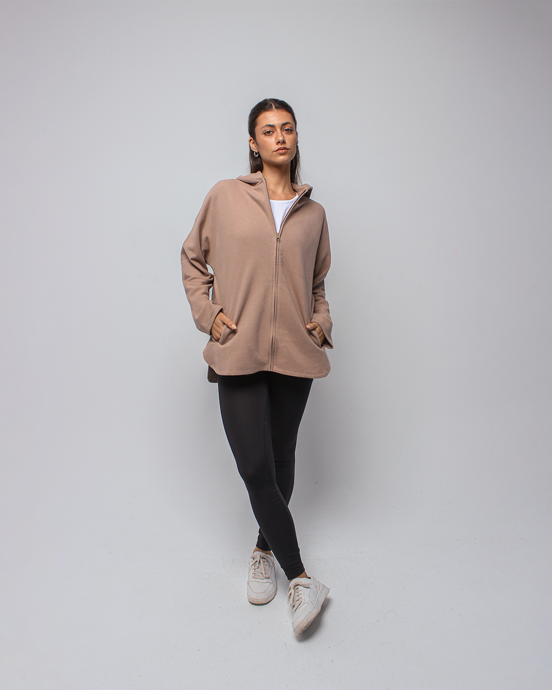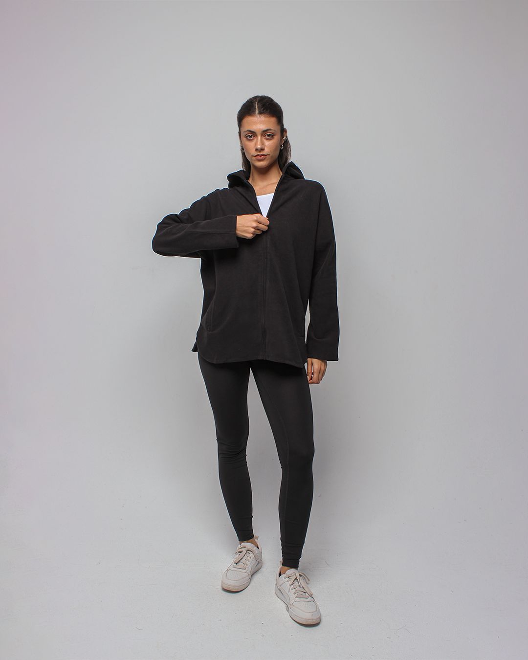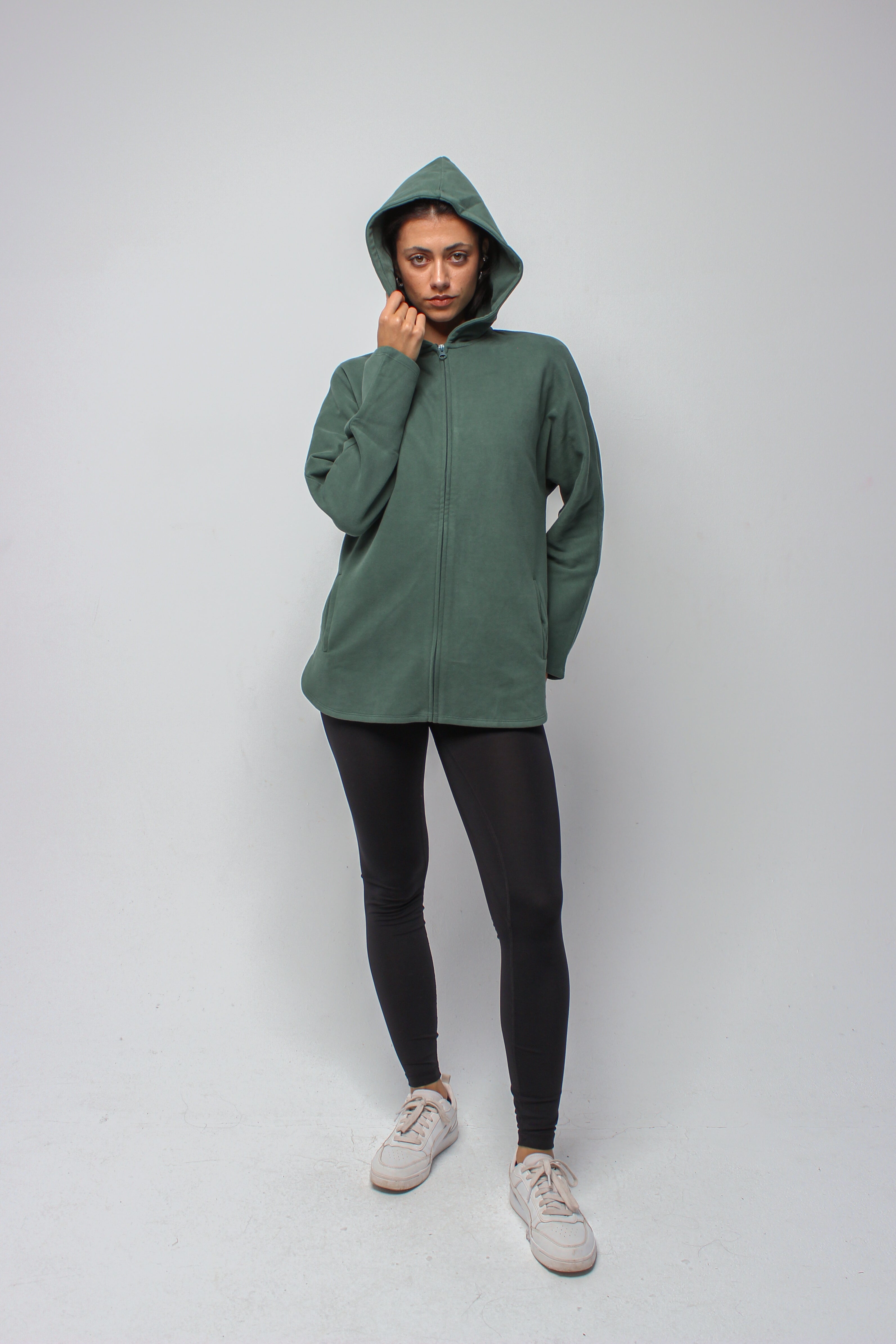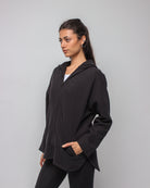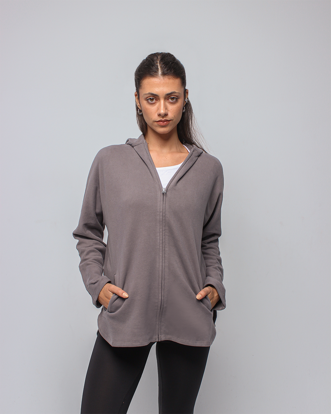 An effortlessly relaxed full-zip jacket designed with an oversized silhouette for maximum comfort. Featuring a spacious hood and soft, breathable fabric, it delivers a cozy, laid-back fit perfect for layering before and after movement.